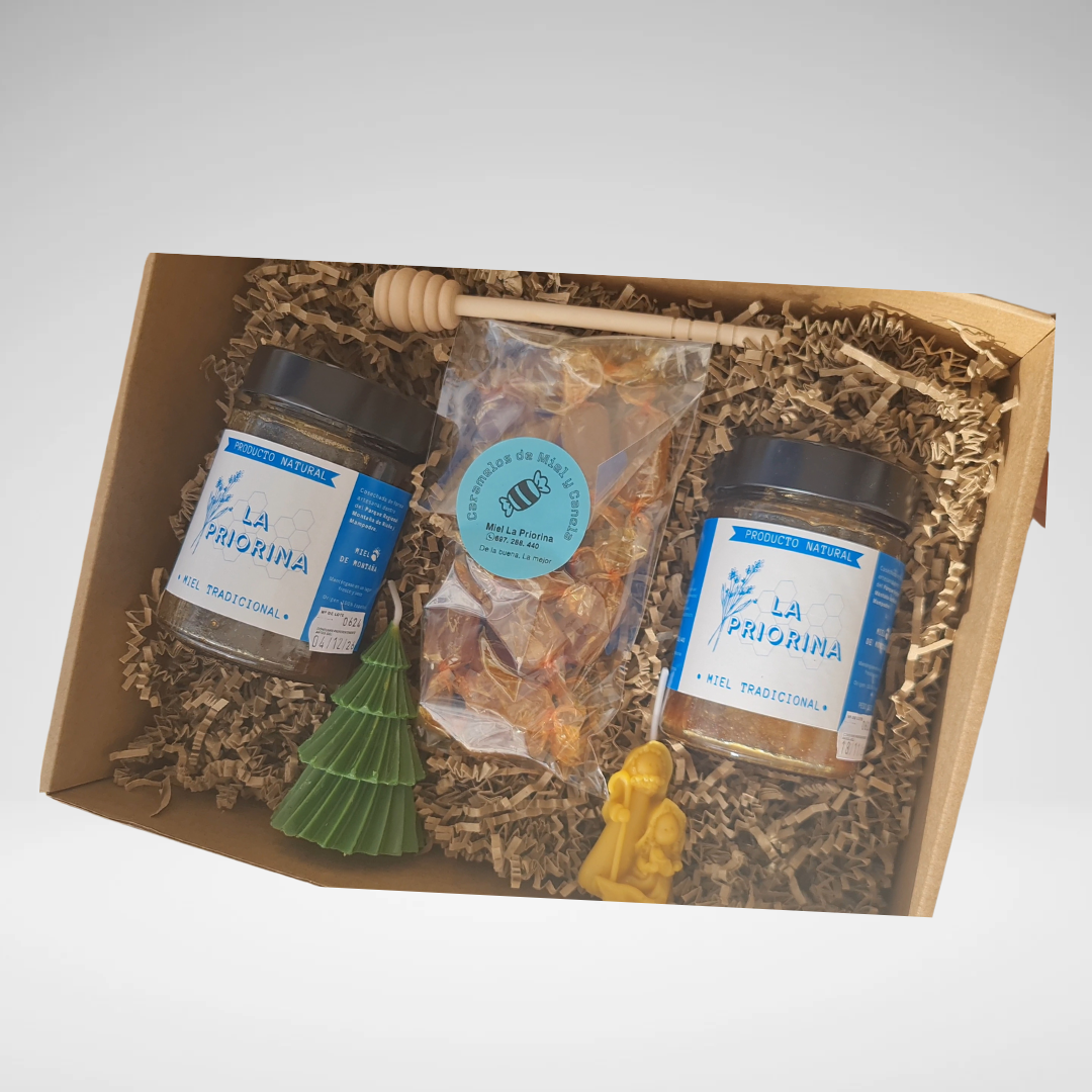 Presentado con mimo en una caja de cartón, con un toque navideño, esta selección resalta la esencia y calidad de los productos de la apicultura artesanal. Un regalo lleno de dulzura y tradición.